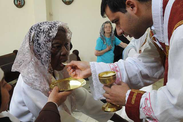 Doña Penha beim Empfang ihrer Erstkommunion im Alter von 101 Jahren am 28. September 2016 - Es ist nie zu spät!